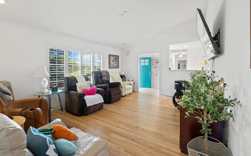 Nestled in a quiet neighborhood, our Orchard Lane home offers a peaceful retreat with cozy living spaces and inviting outdoor areas. Residents enjoy gardening, relaxing in the sunshine, and the comforting feel of a true family home.